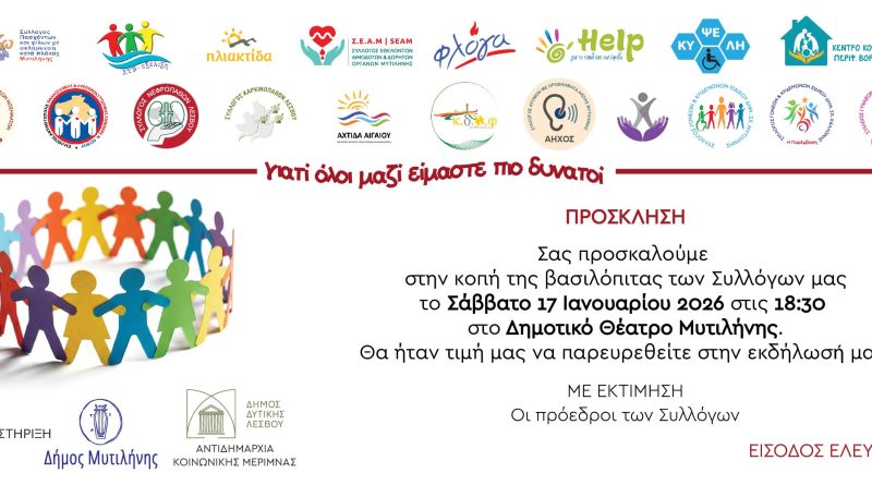Ο Σύλλογος Άγκυρα συμμετέχει στη συλλογική κοπή πίτας όλων των συλλόγων Κοινωνικής φροντίδας για το έτος 2026 που θα πραγματοποιηθεί